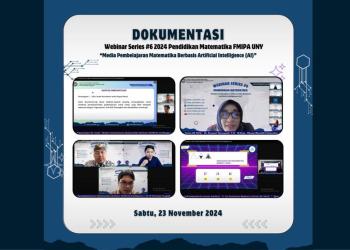 The Department of Mathematics Education, Faculty of Mathematics and Natural Sciences, Yogyakarta State University (UNY), successfully organized Webinar Series #6 2024. This webinar was held on Saturday, November 23, 2024, with the theme Mathematics Learning Media Based on Artificial Intelligence (AI).